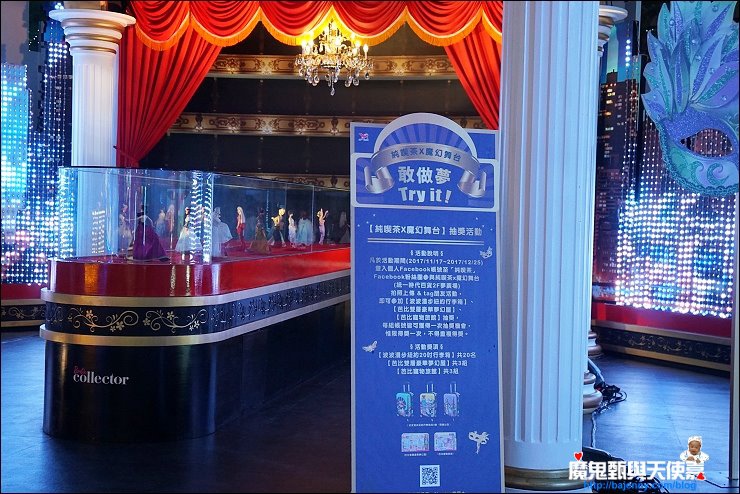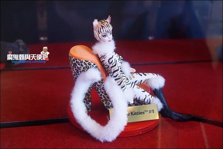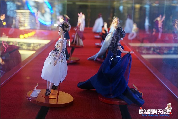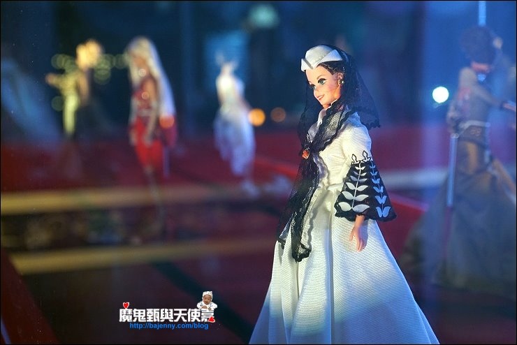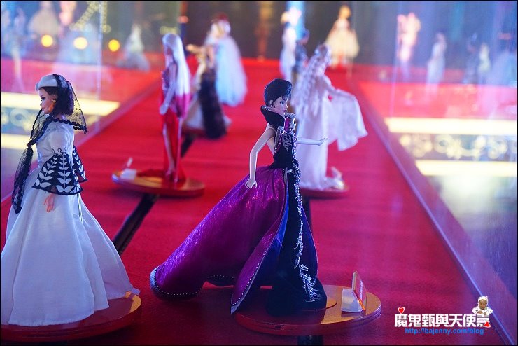 芭比伸展台的設計非常巧妙,芭比們轉動如同時尚走秀一般,可以看到她們正面、側面及背面,奇幻系列虎女、豹女、時尚名模、歌劇名伶、名設計師等等,豐富的姿勢與表情,讓這些美麗的芭比栩栩如生,非常動人!我最愛亂世佳人,白色禮服搭配黑色蕾絲,氣質非凡,紫影舞光的紫色長禮服神秘而華麗,我也好想擁有!在欣賞魔幻舞台的同時,也聽到不少人對魔戒裡的精靈女王與瑪麗蓮夢露都有很高的評價,芭比迷更不能錯過!
