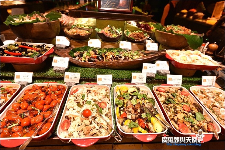 龍蝦的蝦鉗和身體肉質都很新鮮飽滿,喝完熱湯之後,甄大嬸和允嘉大哥都差點吃不完一隻,鳥大叔覺得嗑完龍蝦差不多也到八成飽,再進攻自助百匯的戰力所剩不多啊~~