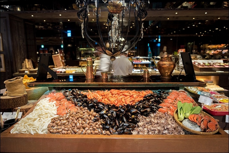 君品雲軒自助百匯的午餐、晚餐,甚至下午茶吃到飽都很有好評!空運歐洲生蠔、大閘蟹、帝王蟹、龍蝦、肋眼牛排+buffet吃到飽專案只要一推出,因為話題性十足,常常都會大排長龍!
