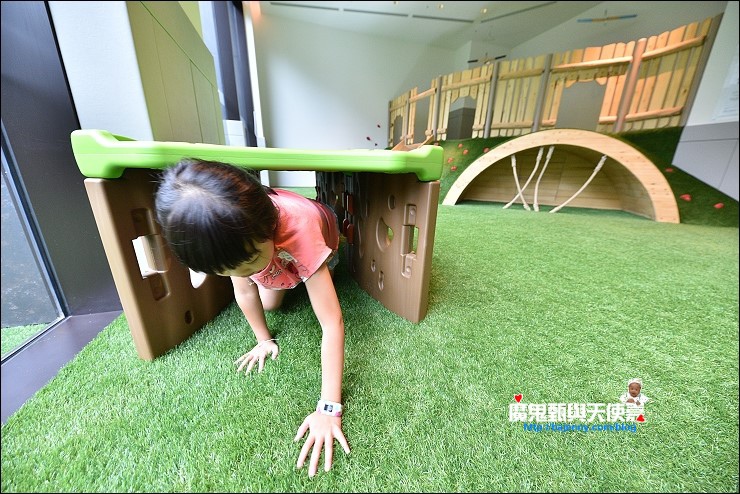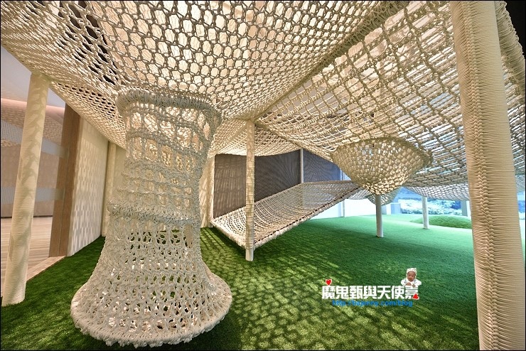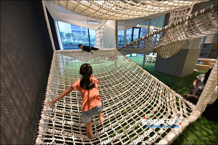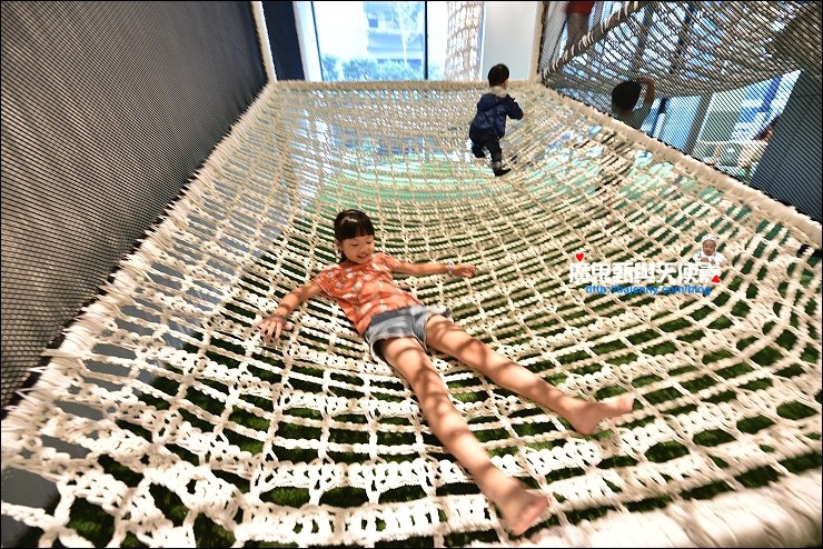 這個大型網繩立體迷宮,真的會讓小朋友的個性、活動力和手腳協調度立馬現形,有些躡手躡腳小心翼翼的慢慢爬,有的一溜煙衝上去,又一股腦兒滾下來,然後轉眼又身陷網繩迷宮裡。