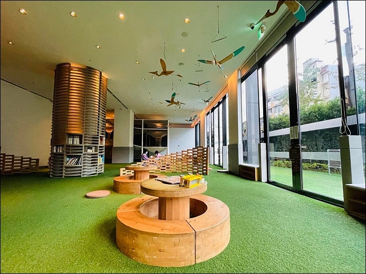 偏好靜態活動的小朋友,這裡也有童書和桌遊可以打發時間,不少大人直接躺在旁邊的鯊魚懶人骨頭滑手機XD