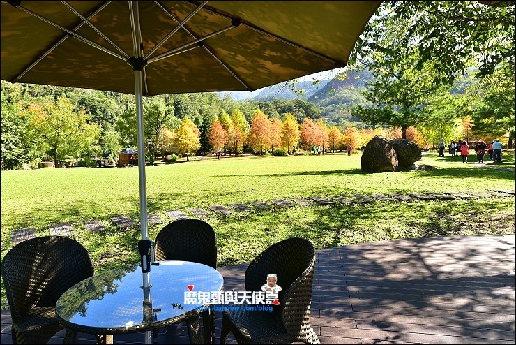 早早拍完的朋友,也可以坐在落羽松森林旁的草皮露天咖啡座,邊欣賞風景邊挑照片打卡XD,這裡小朋友來也很有得跑~