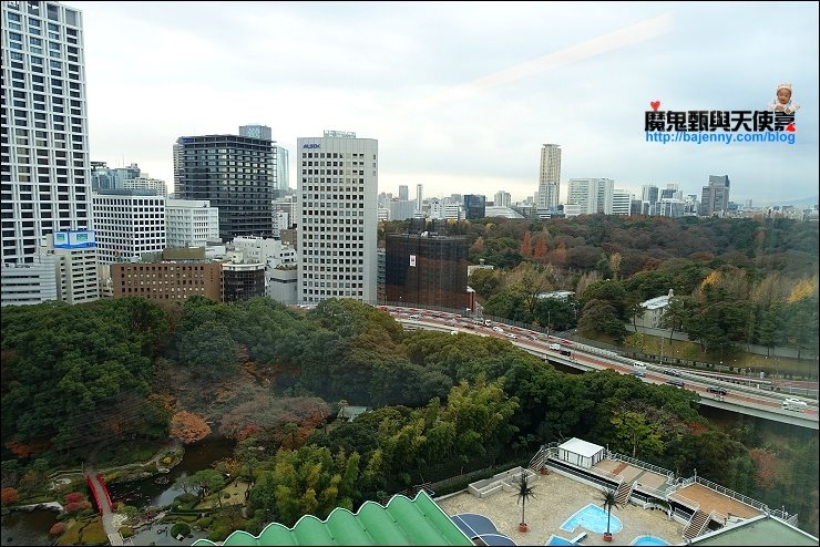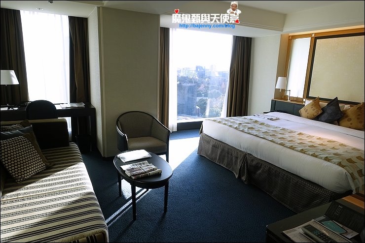 房間欣賞四百年歷史的日式庭園及東京市區城景,鄰近迎賓館,環境悠美,很難想像在東京市區的飯店可以有這麼棒的飯店,房間大而舒適,搭配室室外的綠意美景,奢華享受。
