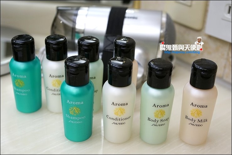 浴袍掛在門後,冬天洗完澡穿上純棉的浴袍很舒服,備品也都有備齊,另外還有給沐浴鹽跟洗澡布,洗髮精潤髮乳是資生堂Aroma系列,洗起來很舒服。