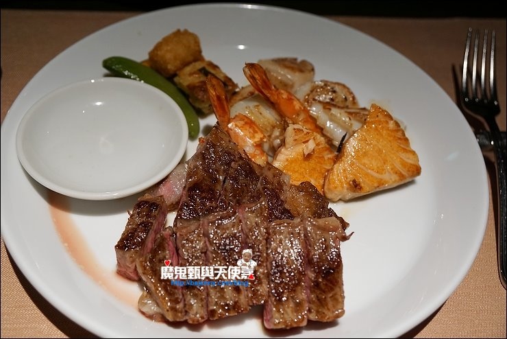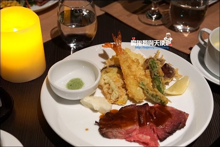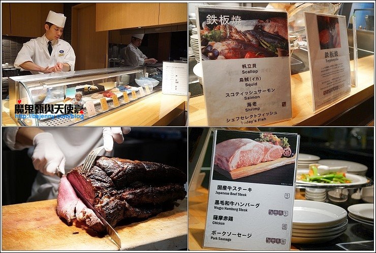 The Sky主打現點現做,包括鐵板燒、炸天婦羅、握壽司、各式蓋飯等,都是由廚師們現點現做,完全新鮮,現做的最好吃!炸天婦羅現點現炸現吃最好吃,還有現煎和牛(偷偷說,我吃了二盤),然後天使紅蝦跟帆立貝現做鐵板燒,口味也很棒,我們四個女生戰力十足,這只是第一合回!如果食量不大的朋友,建議先略過冷盤,直攻鐵板燒!