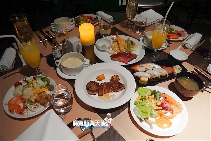 餐點一樣沙拉、水果、西式麵包火腿與日式小菜都有,想吃什麼自己來,本以為高樓層餐廳以景觀為訴求,但這裡的餐點也很多樣。