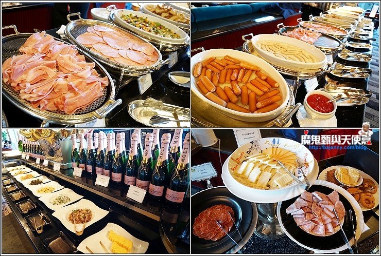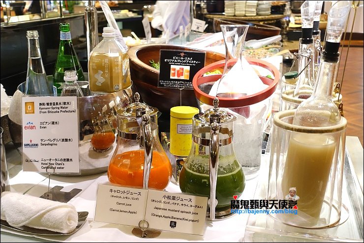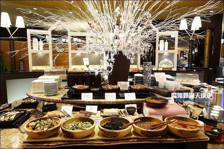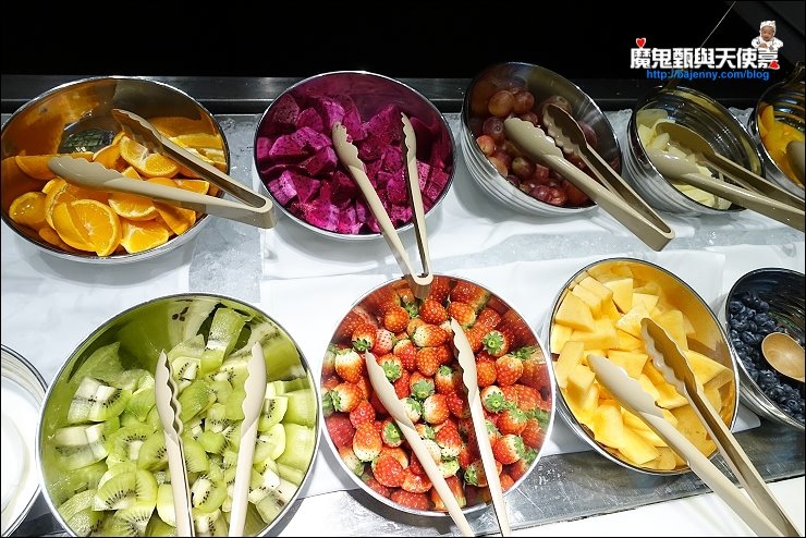 餐點樣式豐富,準備超級仔細,以水來說,一般就給一種水,SATSUKI光水就準備日本溫泉水、evian進口礦泉水及炭酸氣泡水,牛奶也好幾款,伊比利亞黑豬的火腿搭配各種起司,還有無農藥蔬菜做成的沙拉,日式、西式及中式料理通通吃的到,十款水果,新鮮度很夠,還有價位較高的藍莓,實不相瞞,我吃了不少,一種吃夠本的概念!