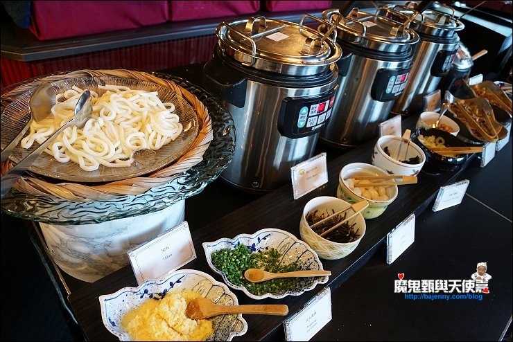 自助式早餐自由取用,西式、日式通通吃的到,還有現煮烏龍麵,喜歡加什麼料自己來,早餐絕對讓你吃到飽!