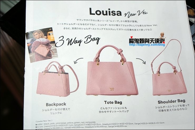 進一樓對我來說最吸睛的就是日本品牌Samantha Thavasa,包包都好女人好美哦,這款新款包有三種用方,可以短把手提好高雅,也能肩揹或斜揹,好看又實用,總共有九色,我家野馬妹肯定選湖水綠!