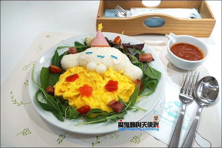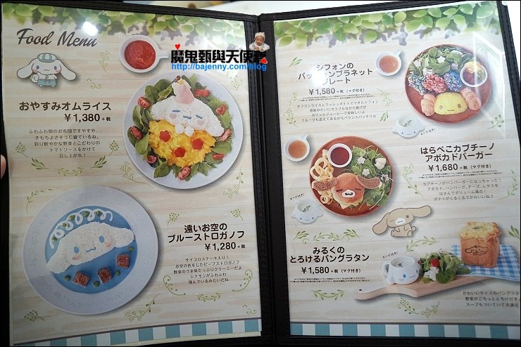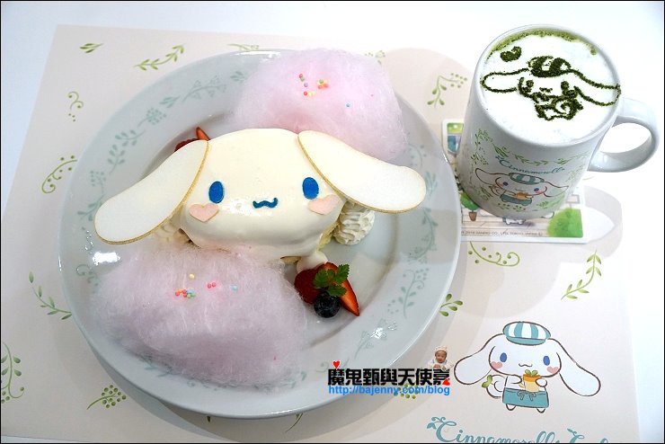 Cinnamoroll Cafe除了可愛的大耳狗飲品,也有吃的飽的飯類或下午茶甜點的選擇,每種看起來都可愛哦,大耳狗的大耳朵還變身成天使的翅膀,實在是太萌了。