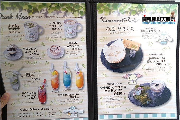 中場休息時間就是進餐廳吃飯喝飲料,順便研究行程及購物攻略!河原町OPA有日本人氣的三麗鷗(Sanrio)目前人氣票選第一的大耳狗主題咖啡廳Cinnamoroll Cafe,全關西僅此一家!店內裝潢走萌系列,女生走進來肯定尖叫,男生想讓女生開心,來這裡喝咖啡約會準沒錯。