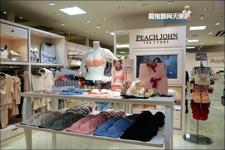 享受了大耳狗幸福午茶時光後,繼續啟動逛街模式!PEACH JOHN是很多女性朋友內衣的好選擇,內衣有性感或是可愛蕾絲路線,過年穿紅的最旺了啦,可愛的日本女店員表示,他們家的內衣主打穿了很舒適,平口內衣很多人會買來當小可愛,穿搭不衣走光。