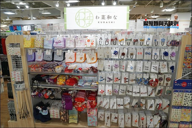我們從一樓逛到七樓,一看到大創,雖然台灣也有大創,但來到日本還是會默默走進店,東西實在是又多又便宜,超好買的。這區是走日式和風的小物,綁頭髮繫上這個立馬變可愛日本妹了我。