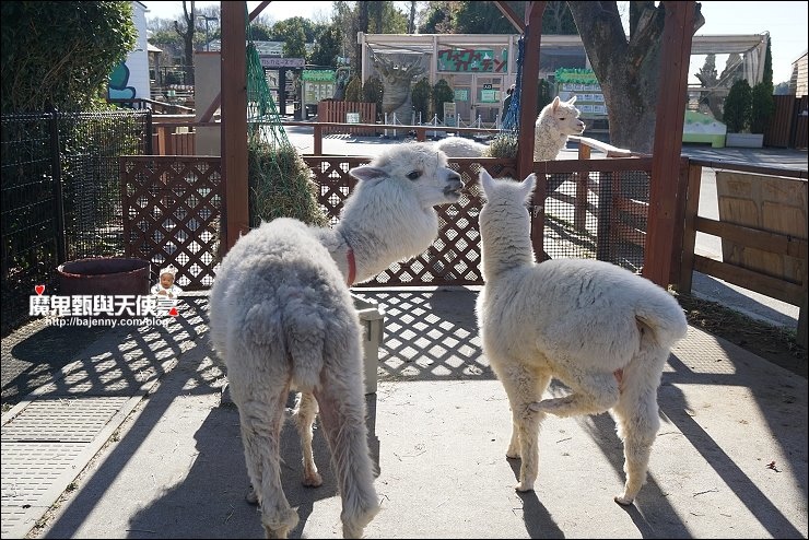 一到園區就來跟超萌的草泥馬打招呼(學名:羊駝),他們長的真的可愛哦,天真無邪的表情好萌哦,小草泥馬一直跟在媽媽身邊,跟我家黏踢踢的阿弟好像!有開放遊客餵食體驗(需付費),跟草泥馬互動親近感覺真好!