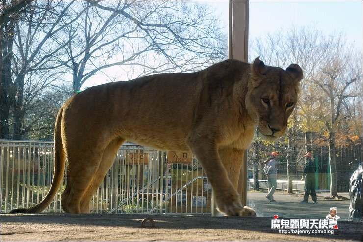 接著來到猛獸區,這邊的動物就兇猛多了!超級近距離的觀看,鐵欄杆跟玻璃保護措施都有做足,安全有保障。獅子區的設計也很棒,讓我們透過下方的玻璃,近距離欣賞獅子,這裡的公獅有好幾頭母大獅相伴,大享齊人之福!孟加拉白虎是世界少見的品種,全世界數量大概只有二百多,東武動物園就有三隻哦!而且這邊還有提供餵食體驗,需報名並付費,我個人比較膽小,餵餵溫馴的草食性動物就滿足了。