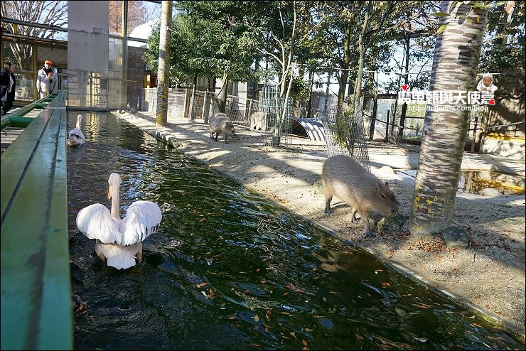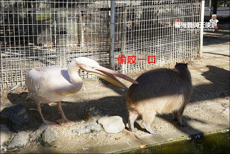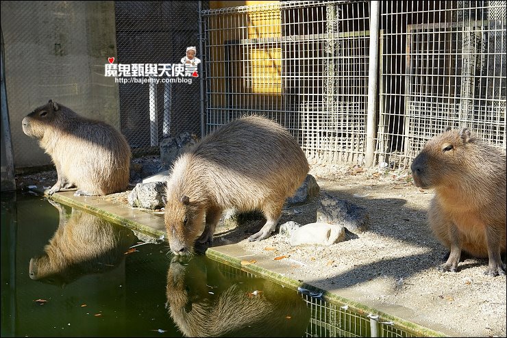 再來看到這個好懶散的水豚君,每隻都吃的胖嘟嘟的模樣看起來很浩呆,還被大嘴鳥偷襲,從後面咬一口,笑死我了,水豚君脾氣也太好了吧,被咬都不會還手,默默的離開一旁喝水去。