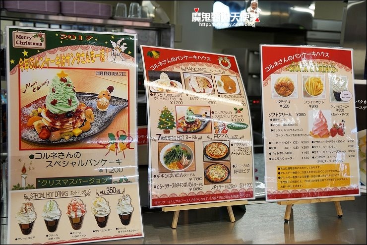 中場休息時間就是吃美食補充體力啦!園區有不少餐廳及小吃店,日式、三明治、輕食及小吃等等,我們來到長頸鹿的鬆餅屋PANCAKE HOUSE。