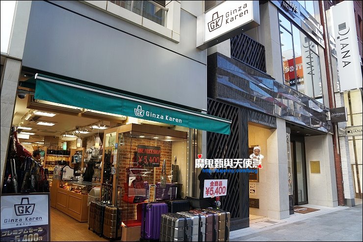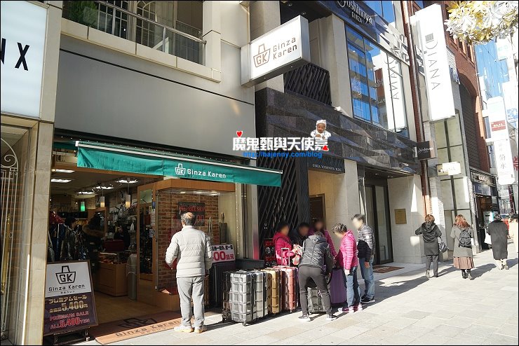 銀座カレン(銀座Karen)交通非常便利,地鐵銀座站A2出口步行3分鐘即達,就在GINZA SIX(GSIX)正對面,這間百貨公司在2017四月盛大開幕,星期天下午銀座大道實施步行者天國,封路車都不能進,行人在這邊可以直接走在大馬路上,有機會我一定要再過來!一來到這裡就看到好多客人已經買好行李箱在門口,生意超好。