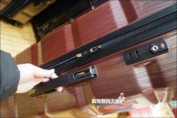 行李箱正面跟側面都有做提把是基本配備,我之前有一咖登機箱就有一邊的提把沒做,在旅行搬運時很不方便。