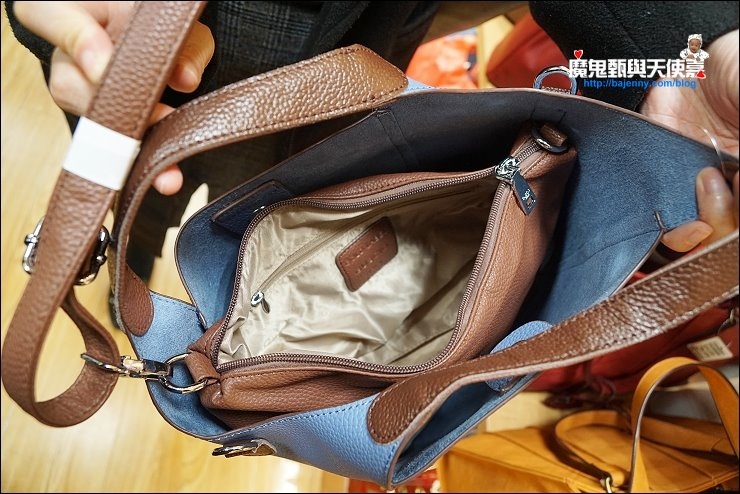 另外也有款式較多與顏色較亮的包款,淡藍色這款包包內層還做可分離的包中包,有種買一送一的概念,我家媽媽應該會喜歡。