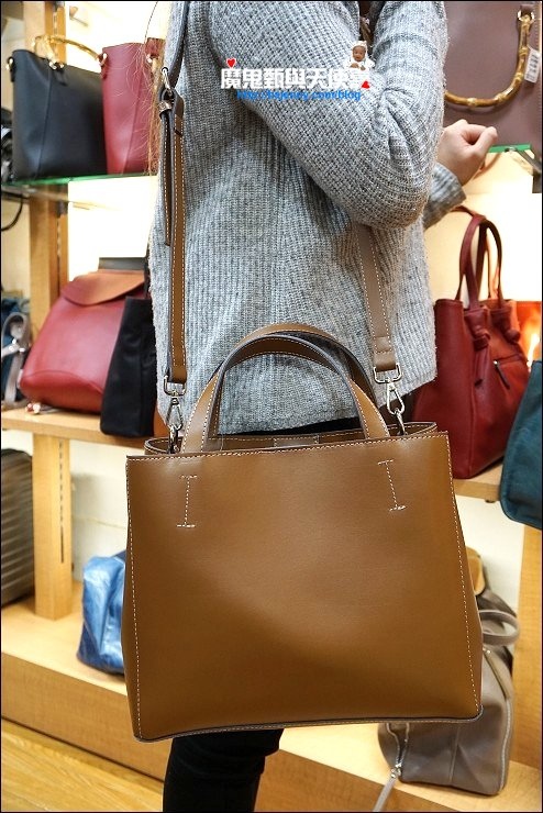 朋友看上的這款真皮包,質感滿好的,這款外型滿挺的,可以手提或肩背及斜背三種用法,感覺可以正式也可以休閒搭配很實用。這時我已經陷入選包障礙了,真皮包款皮革都不錯,很適合需要帶文件或NB跑的上班族。