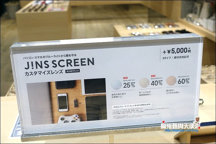 之前聽朋友說到日本配眼鏡又便宜又快速,這次來到澀谷JINS眼鏡店,付款完光半小時就能拿到眼鏡,店內主打選鏡框含鏡片整副配到好只要5,000日圓(未稅),鏡片還可以選超薄不加價,店家使用世佔有率第一的鏡片製造商Essilor集團、以及HOYA集團等製造的薄型非球面鏡片,以現在日幣匯率只有0.268來算,一副眼鏡只要1,340台幣,這個價錢在台灣光鏡片就不止這個價...JINS店內鏡框款式多,有膠框、金框、半框、人氣卡通人物等聯名款等等,選擇非常多,開架式的設計讓客人看喜歡就試戴,還有專業帥哥驗光,也有中文圖示說明,溝通無障礙。