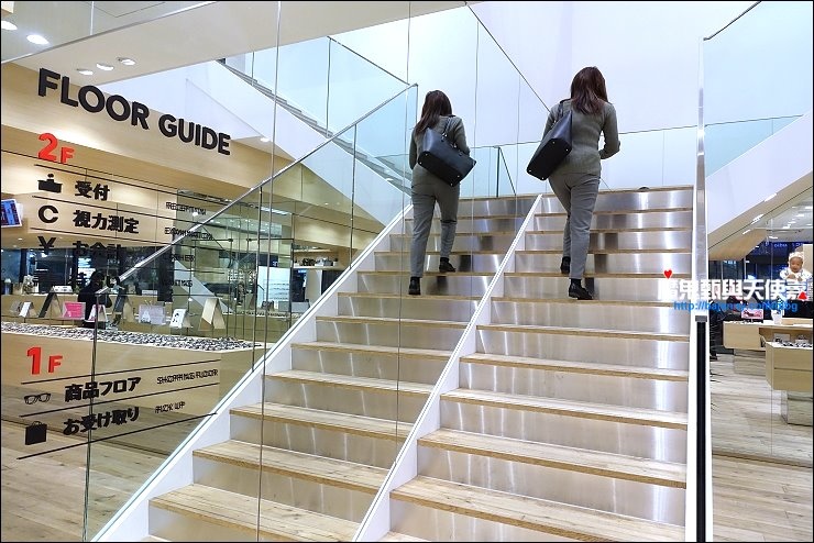 JINS涉谷店是旗艦店,店內空間超大,一樓是眼鏡區,年輕人愛的時尚鏡框或是文青氣質鏡框,甚至是小朋友的鏡框這邊都有,店內裝潢以木質為主,空間感非常舒適,開放式的設計讓客人可以自己挑選,不像台灣的眼鏡店,都得請店員幫忙拿眼鏡出來才能試戴,在日本JINS喜歡什麼自己拿,店內眼鏡陳設處有很多鏡子,眼鏡不專屬於近視的人,其實也是時尚配件的一種,不同臉型各有適合的鏡框,一定要試戴看看才知道適不適合自己。