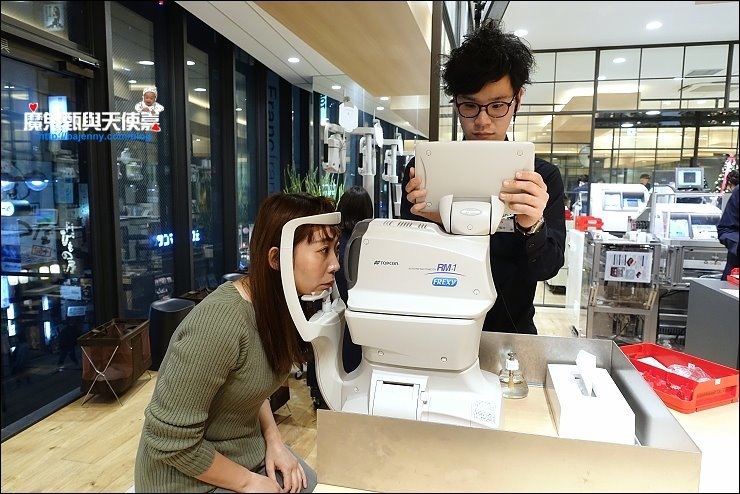 跟台灣配眼鏡一樣,先電腦驗光,再人工確認度數,日本店員服務很好態度親切,驗光有日文螢幕,也可以使用C型的圖示方式來驗光,這樣我們只要手比缺口是上下還左右就行!驗光後會讓客人選擇鏡片,店家的鏡片基本上是不需加價,使用世界佔有率位居第一的鏡片製造商Essilor集團、以及大型企業HOYA集團等製造的薄型非球面鏡片,薄型鏡片與球面鏡片相比,不僅失真度低、視線清晰,而且鏡片薄不會限制鏡框,近視度數高的客人不擔心鏡片太厚,可以盡情挑選喜歡的鏡框。