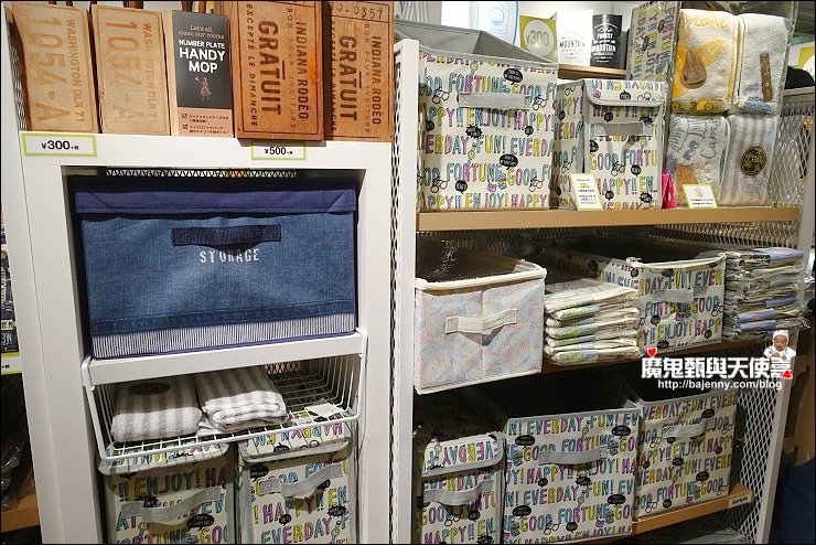 3COINS OOOPS!人氣商品是收納箱,大箱的收納容量滿大的,藍色款還有附蓋子,外型很有文青風,材質是不織布,一個只要三百日圓,換算台幣只要80元,買回家收納小孩的玩具雜物,家裡變的整潔又提升生活品味。