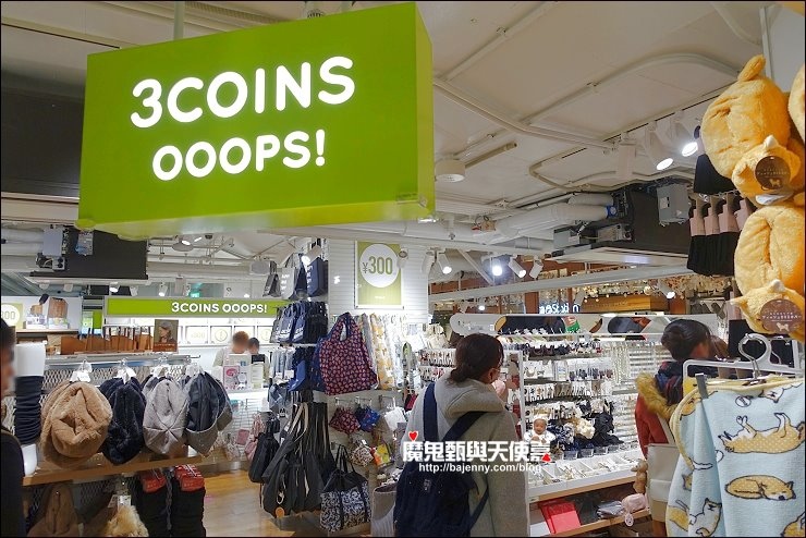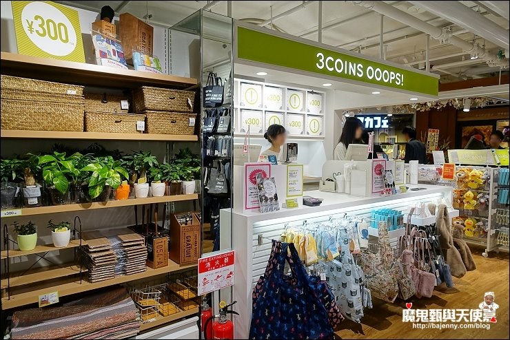 3COINS OOOPS!商店,販賣非常多小物,居家雜貨控在這裡超容易淪陷的,每樣商品都是三百日幣,價格太便宜完全不用考慮,看喜歡就去櫃台結帳,對於趕時間的朋友來說非常便利。