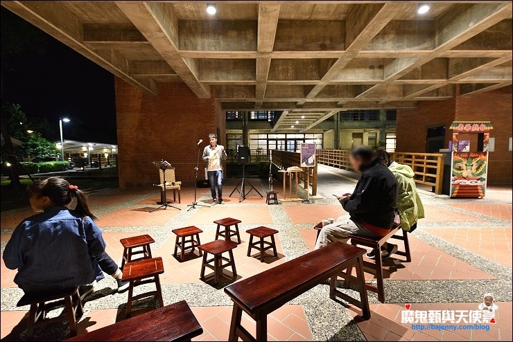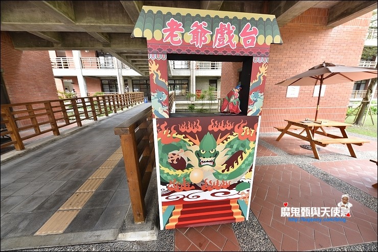 大廳後頭的通廊有許多傳統的童玩,連布袋戲台都出現啦!我們入住時晚上還有野台音樂會,最近天氣冷嗖嗖,記得多穿件衣服再下來。