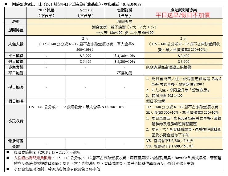 平假日不加價線上訂房連結:https://goo.gl/Y8pr1M