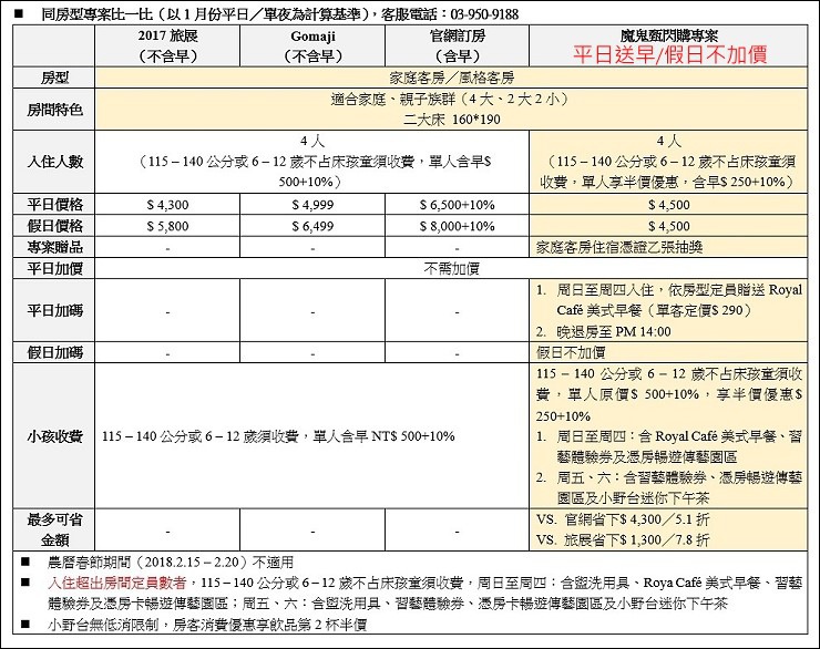 如果是假日入住,而且有不佔床小孩加價的話,此專案會加送小野台迷你下午茶。