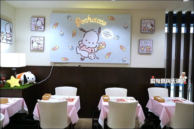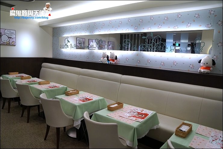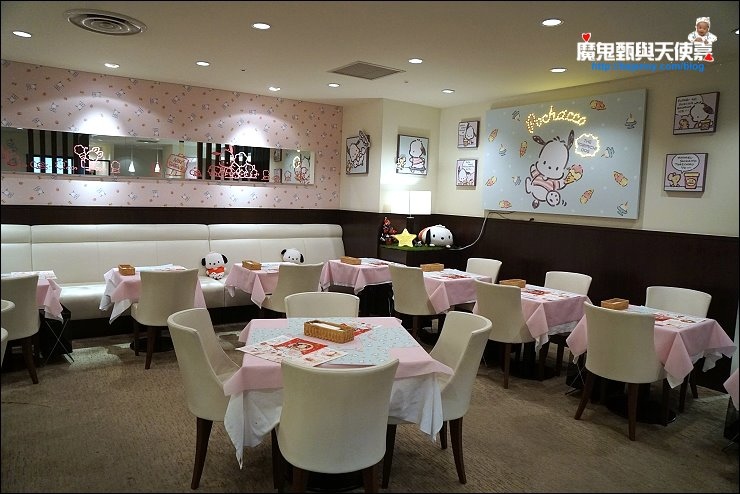 逛街中場休息時間,就是找間燈光美氣氛佳的餐廳享用美食,京急百貨有好可愛的POCHACCO(帕恰狗)主題餐廳,是期間限定,餐廳店內位子不少,有粉紅色系及淺綠色系,大家可以隨喜好選位。