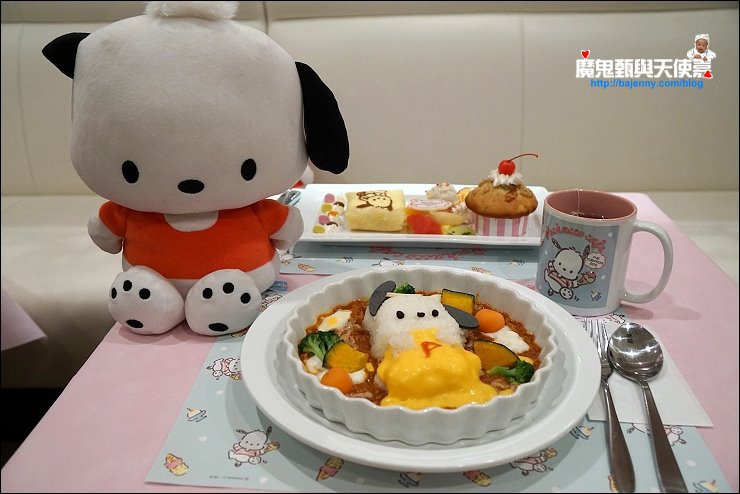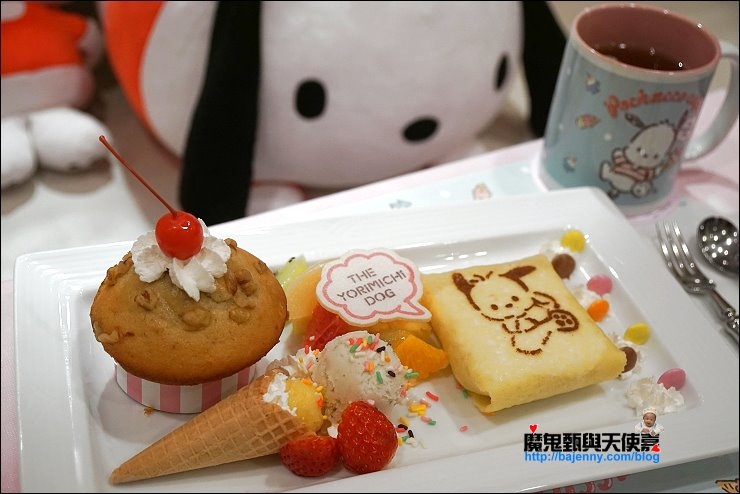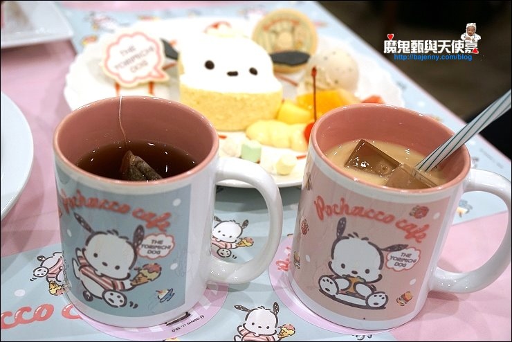 飲料先上,熱飲或冷飲都是用馬克杯,二款杯子都是在享用美食的POCHACCO(帕恰狗),杯子若喜歡,店家也有販售。