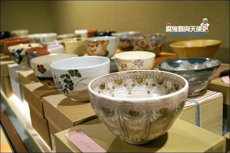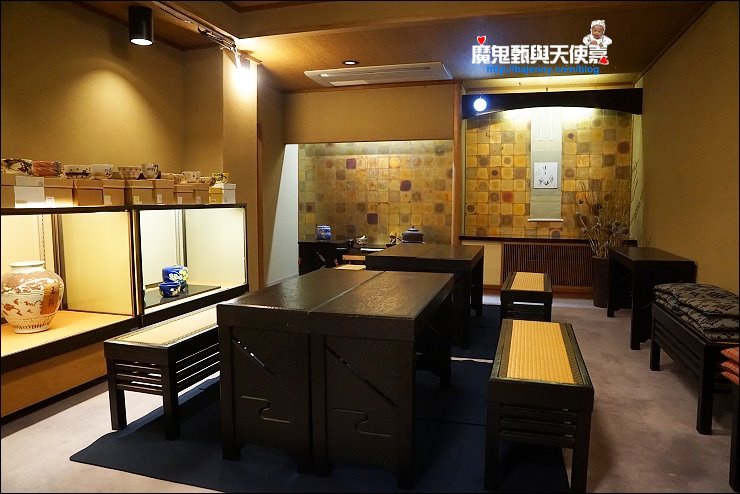 進入室內得拖鞋,提醒大家要記得穿襪子比較有禮貌哦!拖鞋進來的二桌是長椅位座位,裡面也有和式座位,對於無法正坐的朋友,可以選擇這邊以舒服的姿勢來喝茶。這邊也有很多漂亮的茶杯,喜歡可以買回家,我就看上好幾個杯子,價格不貴又很有質感。