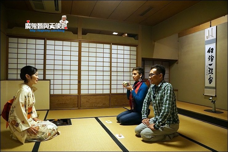 大家都很心平氣和的在對談交流,尤其我們這場體驗分別有日本人、澳洲人、馬來西亞華裔加台灣人四國聯盟,用著簡單的中日英三國語言隨便聊,欣賞室內的書法及其佈置,氣氛極好。台灣不少人很愛往日本跑,不如就到伊丹來親自體驗看看,說不定你會跟我一樣,愛上抹茶專屬大人的苦香味。