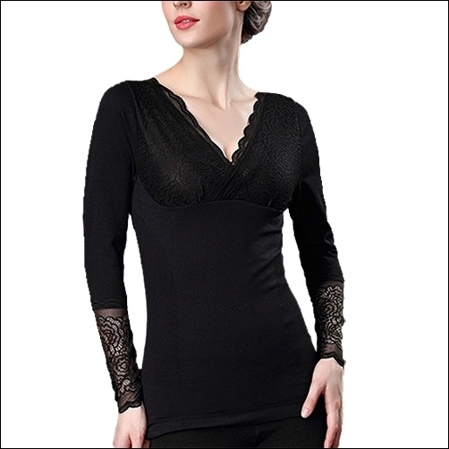 有袖這件厚刷毛姐妹大讚穿起來舒服,刷毛厚度介於中間,手部的蕾絲質感好,胸前的蕾絲也舒服不會刺,兩側腰間也有加強修飾,性感度破表啊,穿外套外衣時微微露出蕾絲花邊真的好加分!姐妹說這款她穿去山上露營最適合!