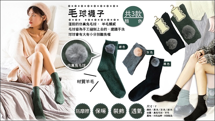 毛球這雙質感真的很好,仿兔毛質感的毛球皆為手工縫制上去的,建議手洗(但懶人如我一樣丟機洗也沒事:P),球球難免會有大有小,姐妹一試穿就大愛這雙!她的第一名~~