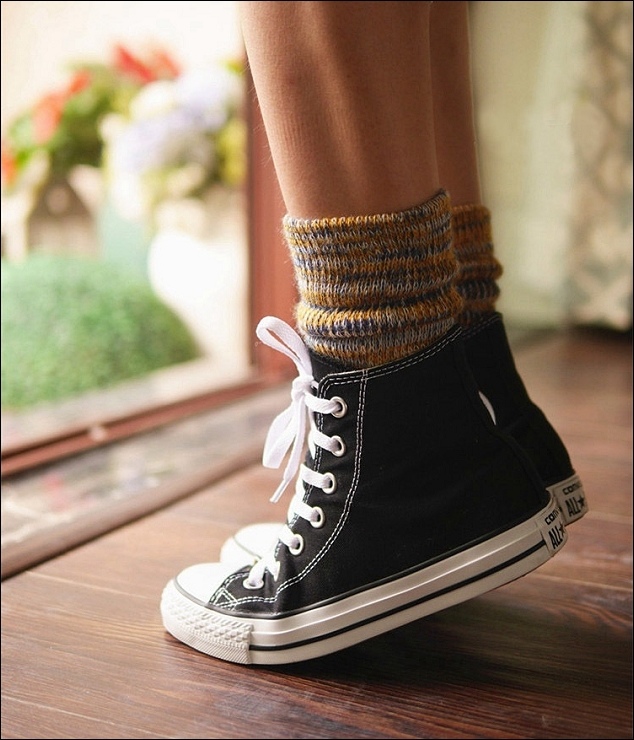 如果不喜歡太花俏的人,也有素色款可以選喔!這種百搭純色的半摺襪就是你最好的選擇,隨意的堆堆穿就很好看!這款材質也很好,羊毛混纖維。
