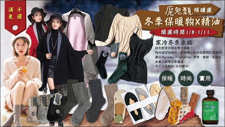 這次開團的冬季保暖物,除了幾款實穿的保暖衣,小資女辦公室必備的手袖披肩(機動性強不會掉),神奇的收腹顯瘦牛仔褲(可將大腹變小腹、小腹變沒有),好穿的毛襪、隱形襪、還有可以讓生活小確幸滿溢的好物:冬天泡澡必備的精油(小孩很愛),追劇神器浮誇床靠(本人近期新歡),靠這些過冬好幸福啊~~