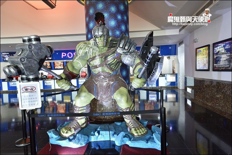 進場前也可以在沙發區稍作等待,周邊也有大型經典代表人物可欣賞,我家阿弟看到這些都會大聲說:媽媽你看,有美國隊長吔,還有鋼鐵人吔,光這邊就可以讓他開心好久,媽媽可以輕鬆去逛街。