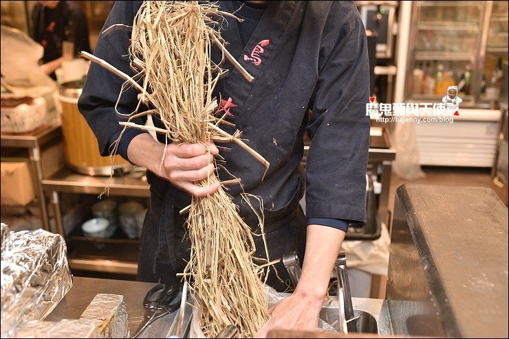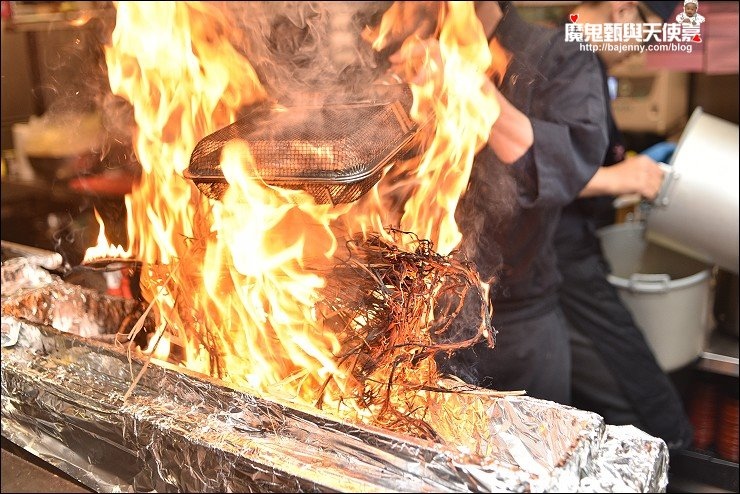 稻草燒雞腿(御鳳雞)也是店家招牌,廚師直接抓整把稻草來烤,火旺起來真的好大,我好佩服廚師超專注的神情!雞腿肉有彈性又有稻香味,可搭配柚子醬提味,美味又獨特,這道料理我跟鳥大哥都有喜歡!