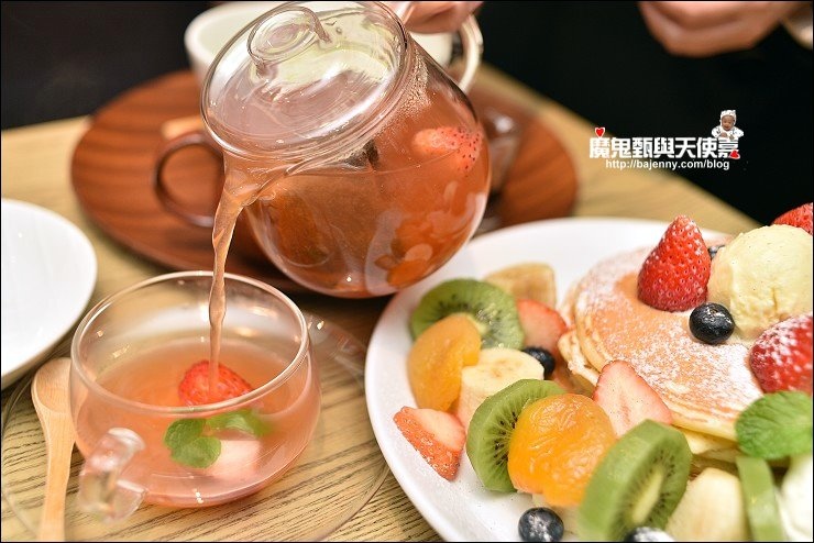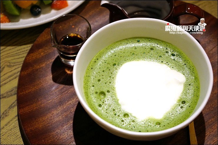 抹茶拿鐵是我的愛,這杯抺茶可以由客人自己涮茶,而抺茶的口感取決於打出來的泡泡,我還是交給專業的店員來幫忙!可以先喝幾口原味的抺茶,微苦的口味抹茶香很足,可以適量加入牛奶及焦糖提味!季節限定的草莓果茶,以紅茶為基底,搭配草莓果醋及草莓果泥,微甜帶酸的草莓果茶,好像戀愛的滋味。