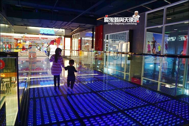 四樓有會變色的LED通道,我還看到遊客在這邊玩猜色遊戲,走過通道是SEGA,這根本就是孩子們的天堂,超多遊樂設施可以玩,小小孩可以玩撈魚等小遊戲,大小孩在大型機台遊戲區大玩賽車及戰鬥遊戲,肯定是要大戰好幾回才行。
