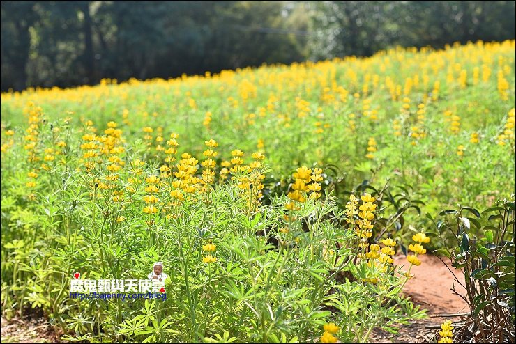 停車場旁對面就有二區魯冰花海,上面的停車場走下來不用五分鐘,349和350代表海拔高度,聽說茶裏王廣告也有來此取景。