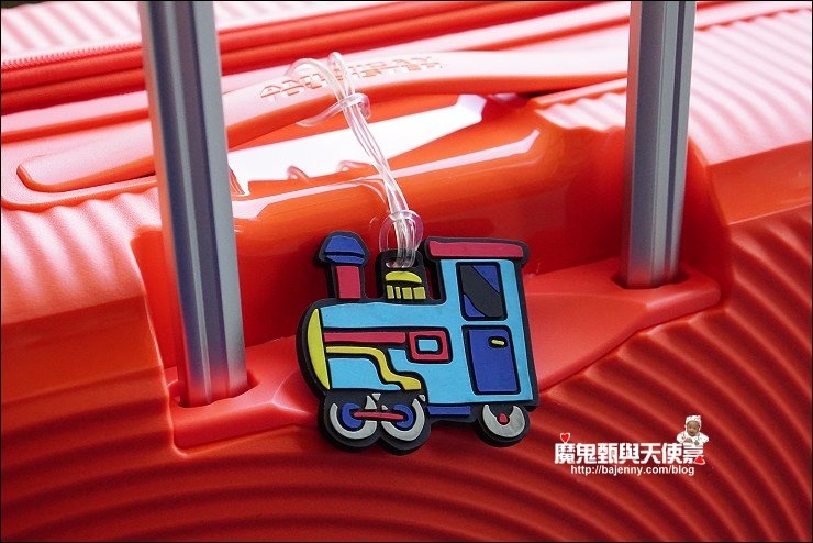 行李箱二邊提把我都習慣掛上自己的記號,寫上姓名、手機及Email,以免行李延誤或有天兵拿錯時方便聯絡,不過這咖非常一支獨秀,要拿錯機率還真不大。