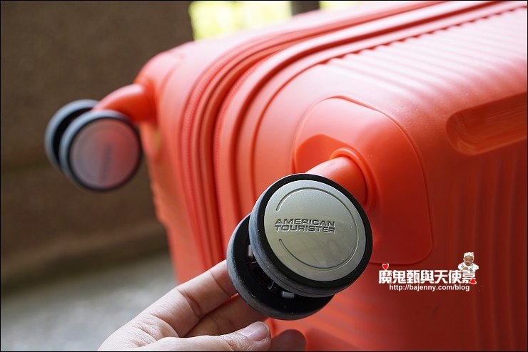 四顆輪子可以360度轉,移動時滑順不卡卡,行李箱最怕裝滿東西時變的難拉,這咖在此趟旅程陪我走遍關西及關東,旅途中有神隊友大加分,行李箱好拉又耐操。