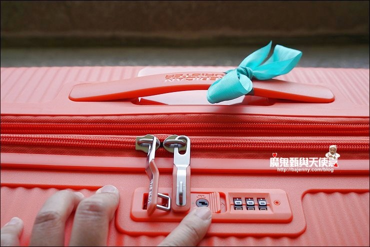 嵌合式TSA及密碼鎖二合一,我自從有過密碼鎖解不開的經驗,現在行李箱都不改密碼了,直接是原始設定000,反正放行李箱拖運的都是衣物或戰利品,不是貴重的東西,重要的錢包、筆電、相機我都揹在身上啦!