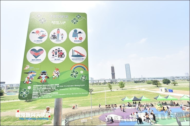 搭台北捷運或機場捷運都可以到,三重站往大台北都會公園出口走路五分鐘內可到,沿著河堤散步過去,現場遮蔭處不多,就捷運高架下方、公園棚架和零星樹蔭,強烈建議早點來或傍晚來比較舒適,現場好多小孩玩到滿臉通紅滿身大汗還拉不走...